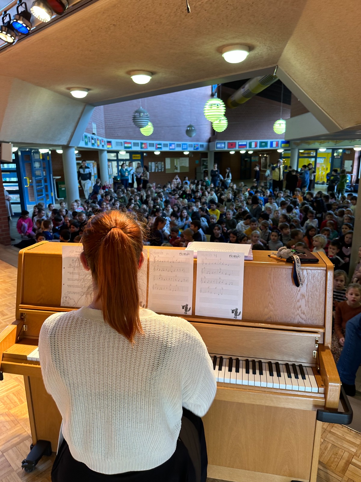Zum Auftakt der Lesewoche trafen sich alle Schülerinnen und Schüler der ARS im großen Foyer. Mit musikalischer Begleitung haben sich die Kinder auf die bevorstehenden Tage eingestimmt. Nach einer kurzen Ansprache von Herrn Winkelmann und Frau Renner ging es auch schon los: