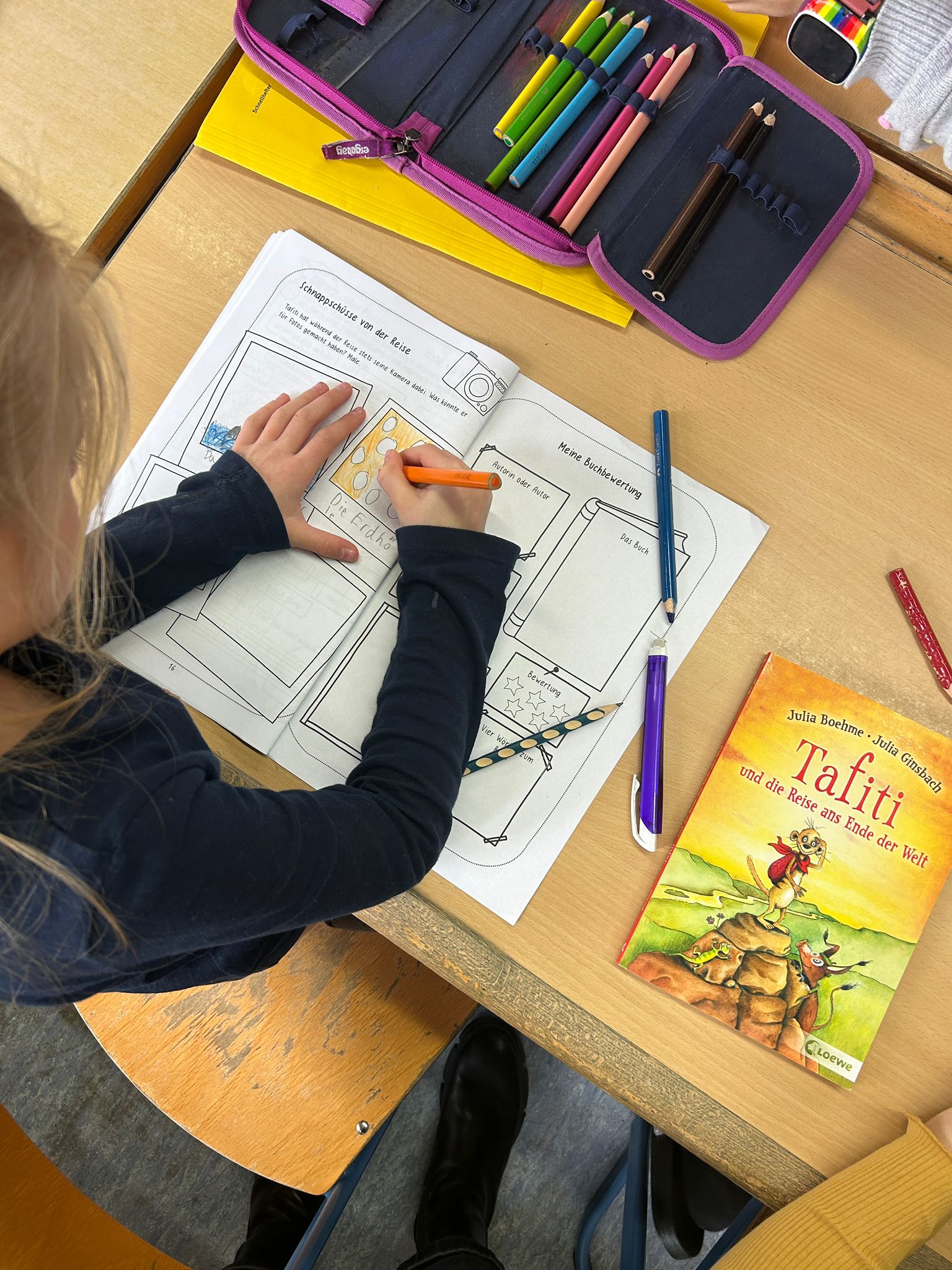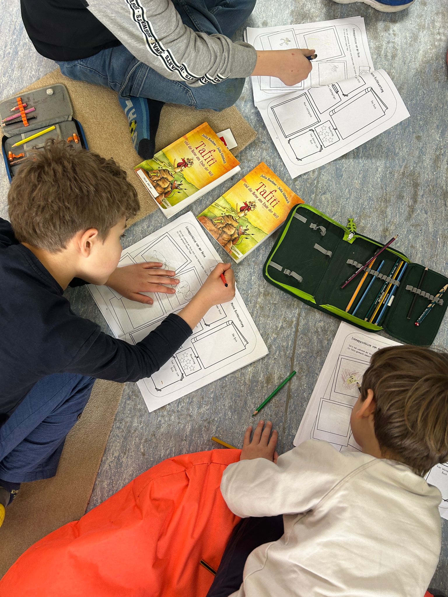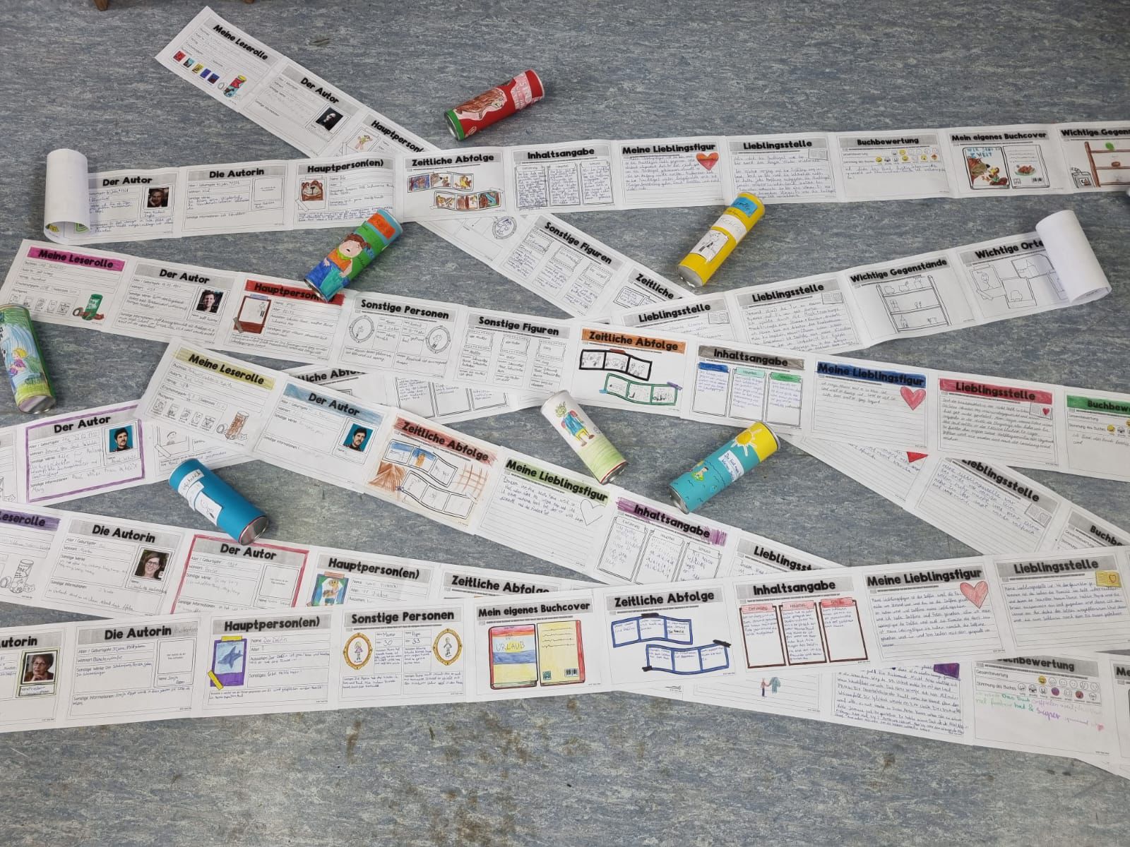 Im Deutschunterricht arbeiteten die Schülerinnen und Schüler an unterschiedlichen Leseprojekten wie zum Beispiel Lesetagebüchern, Leserollen oder Lesebegleitheften. Gemeinsam oder individuell haben sie sich intensiv mit einem Lesebuch beschäftigt.