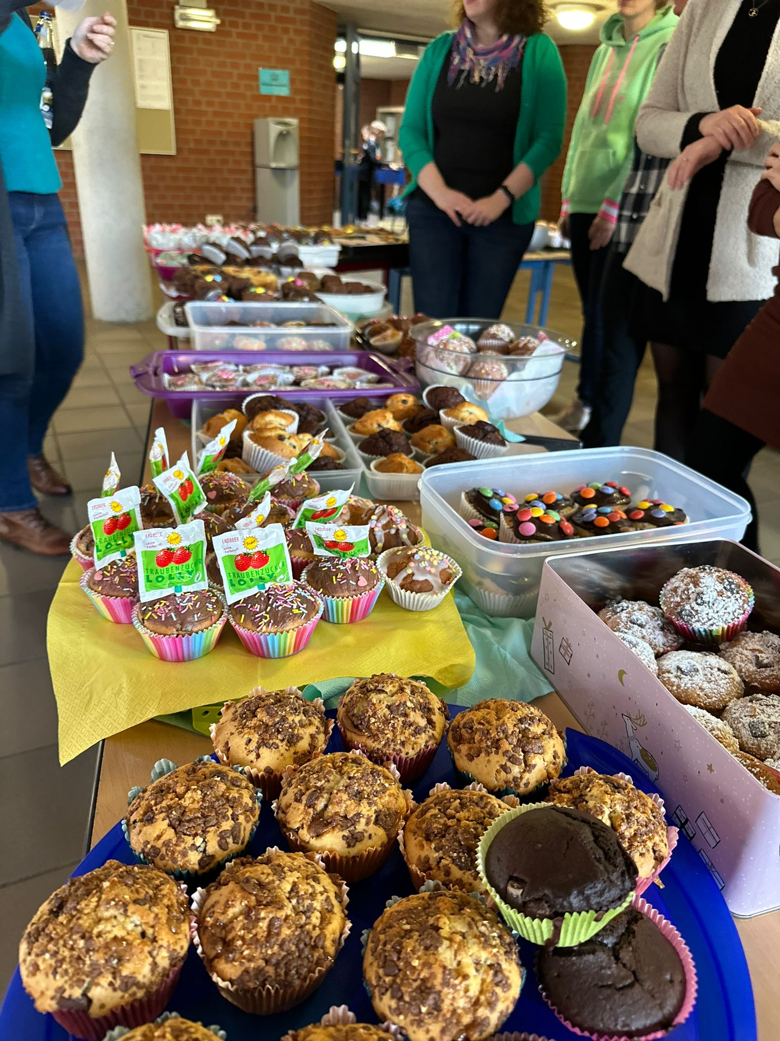 Den Abschluss der Lesewoche machte der Bücherflohmarkt. Für kleines Geld fanden gebrauchte oder ausgelesene Bücher hier neue Besitzerinnen und Besitzer. Zudem wurden viele Muffins in der Pausenhalle verkauft. Über die Einnahmen des Muffinverkaufs freut sich unsere Schulbücherei, die nun wieder mit spannenden, neuen Büchern bestückt werden kann.