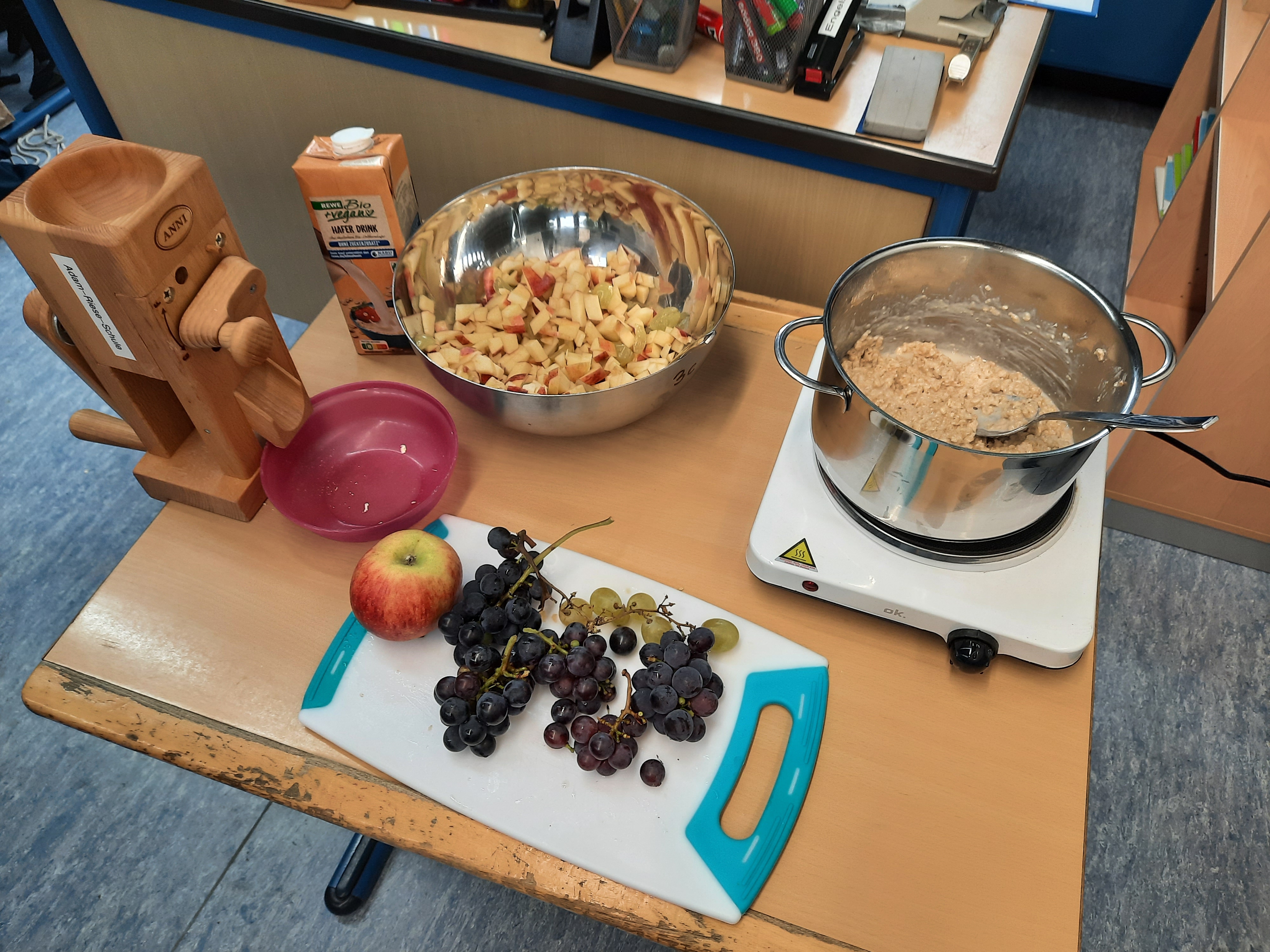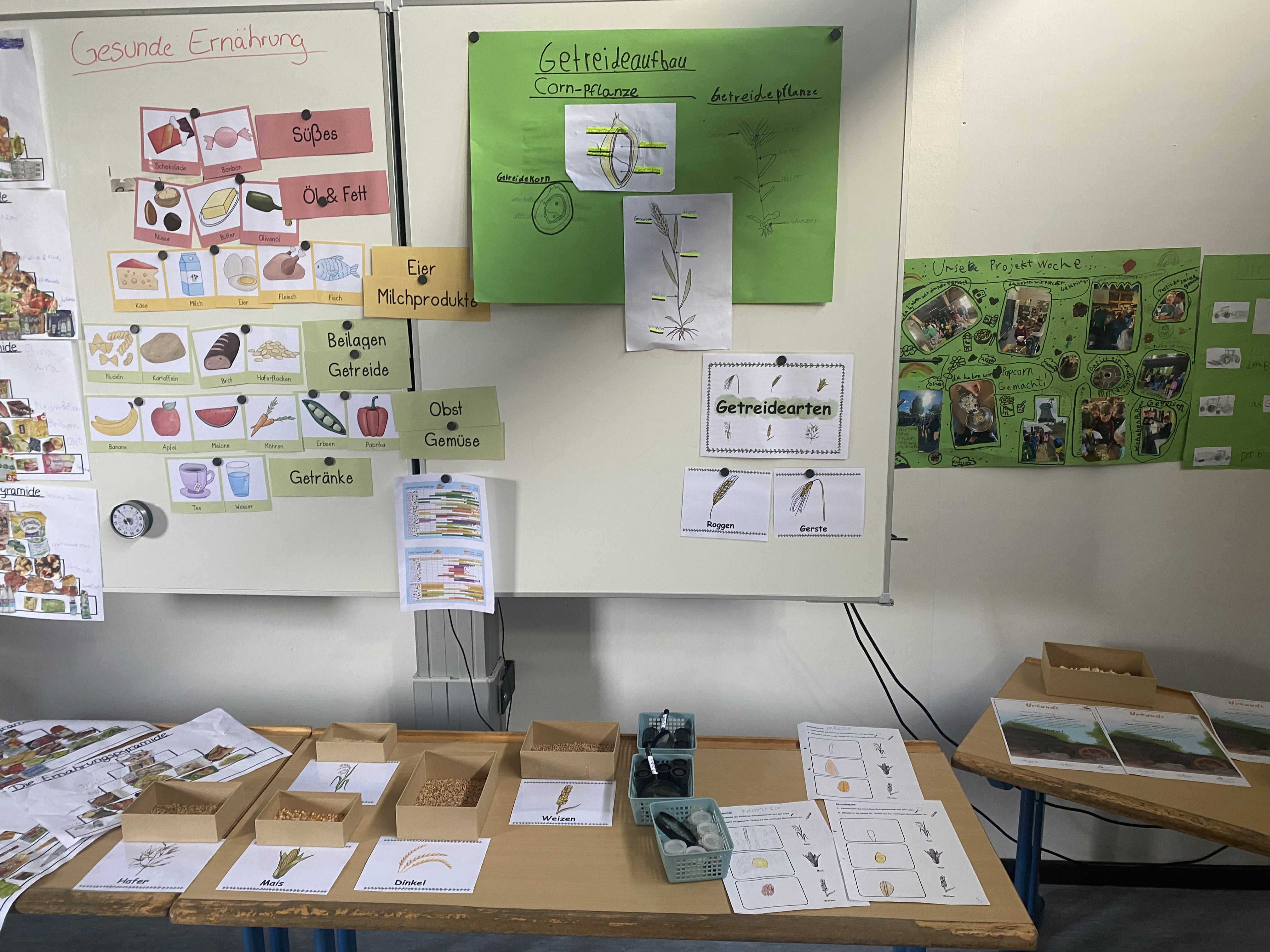 Jahrgang drei beschäftigte sich mit gesunder Ernährung. Es wurden die Aspekte Saisonalität und Regionalität in Bezug auf die Lebensmittel thematisiert. Als Ausflugsziel besuchten die Drittklässler das Mühlenmuseum und lernten den Weg vom Korn zum Brot kennen, welches an das im Sachunterricht zuvor bearbeitete Thema Getreide gut anknüpfte. Im dritten Jahrgang haben die Kinder auch praktisch gearbeitet und fleißig gebacken oder andere Produkte aus Getreide hergestellt.