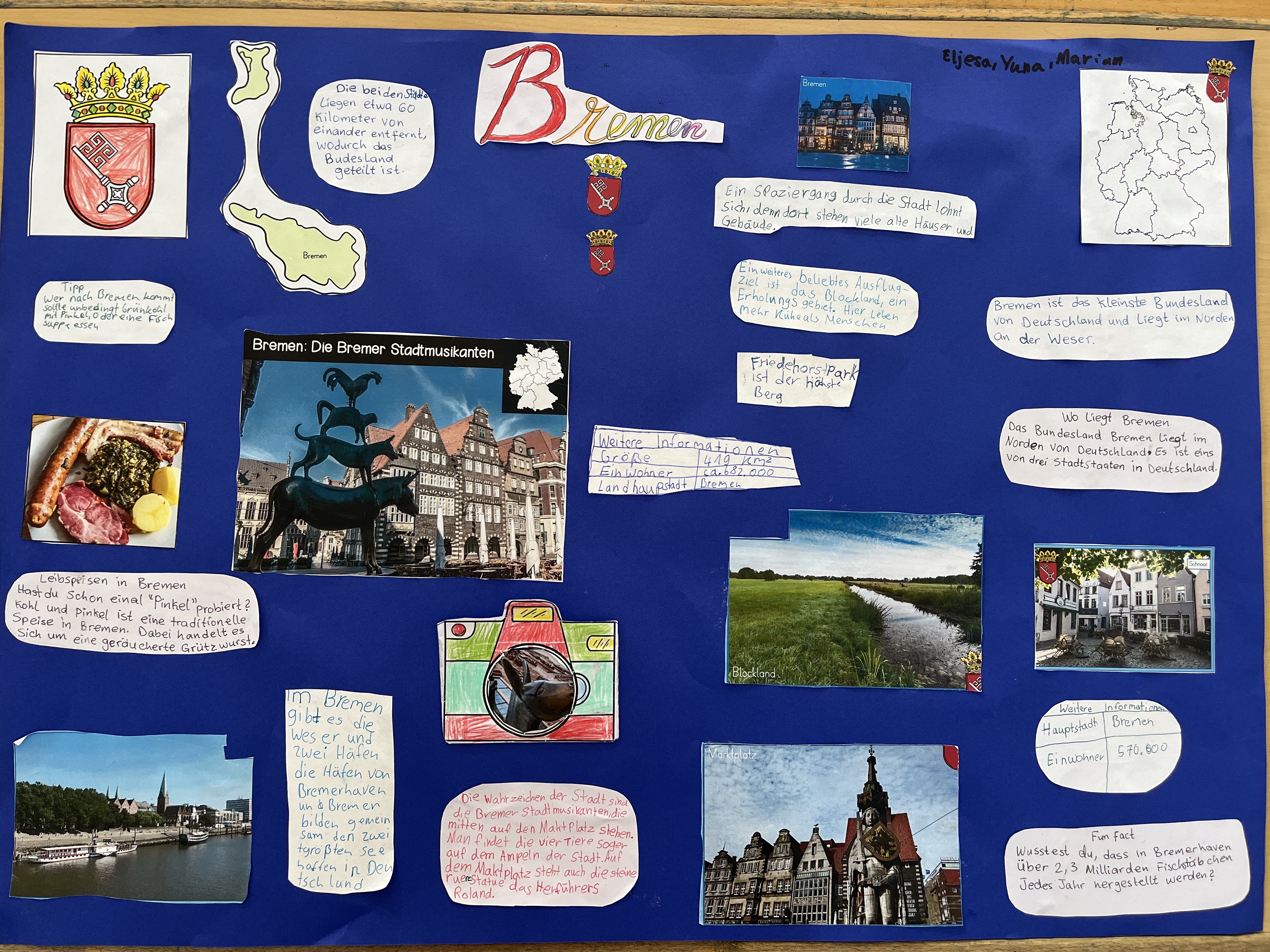 Der vierte Jahrgang erkundete in der Projektwoche ihre unmittelbare Umgebung. Angefangen mit einer Stadtführung durch Gifhorn, lernten Schülerinnen und Schüler dann auch ganz Deutschland und seine Bundesländer kennen. In Gruppen erarbeiteten die Kinder Plakate zu den einzelnen Bundesländern und stellten die wichtigsten Informationen und Sehenswürdigkeiten ihres Landes heraus.